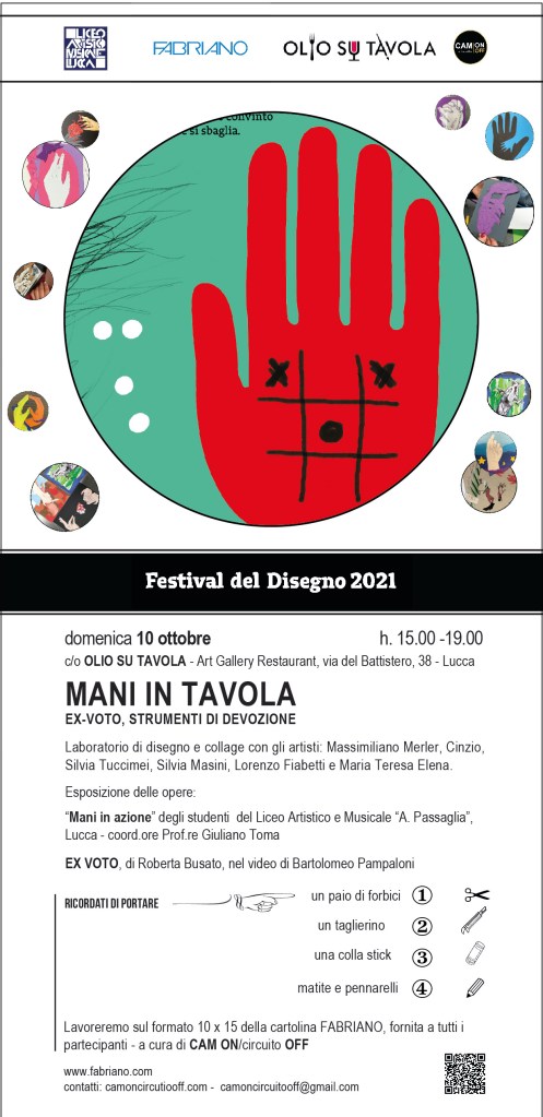 FESTIVAL DEL DISEGNO CARTA FABRIANO 2021 – “Mani in Tavola – Strumenti di devozione“, 10 ottobre c/o Olio su Tavola Art Gallery Restaurant, via del Battistero 38, Lucca