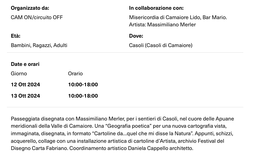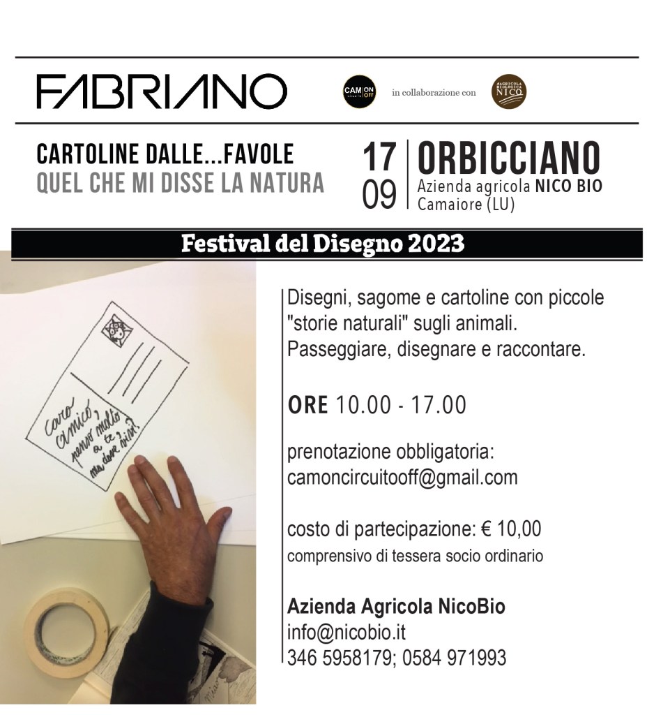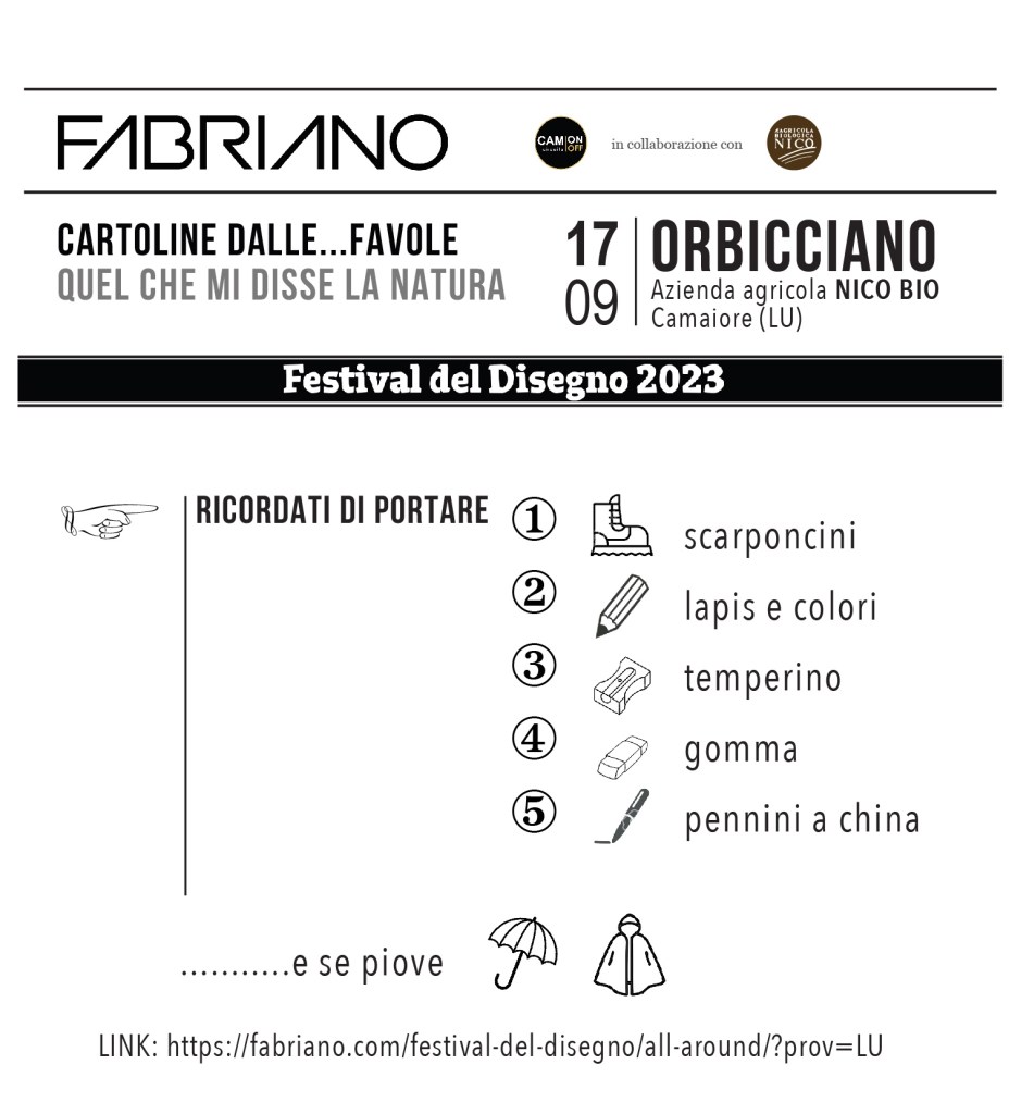17 sett. 2023 FESTIVAL DEL DISEGNO CARTA FABRIANO “Cartoline dalle…favole”, Azienda Agricola NicoBio, Orbicciano, Camaiore, Lucca