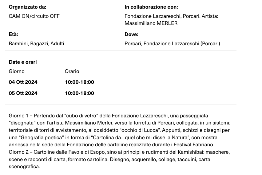 Festival del Disegno Carta Fabriano 2025 “Geografia poetica” e “Favole di Esopo” – provincia di Lucca ( clicca sulla locandina per scoprire le nostre date)
