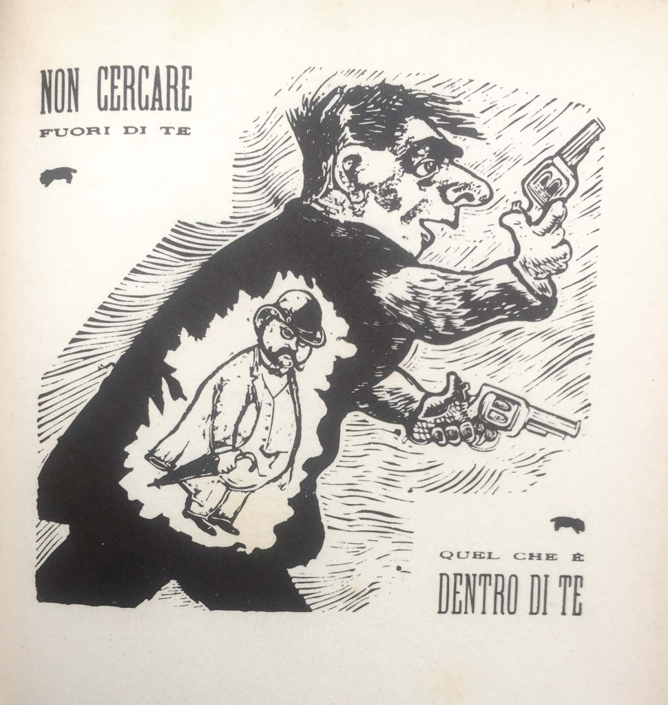 Forse li chiamavano Romantici in Germania, senza confondere il Romanticismo col colloso sentimentalismo dei baci perugina. In Italia forse: comunisti, drogati e frogi per usare dei gentili eufemismi. Quindi prima di ridercela con l’ironia, la satira e la poesia di Bicio Fabbri, Tony Munzlinger, Giorgio Franzaroli e La Fabbrica d’Inchiostro (in Galleria virtuale Santi e Mostri – “Artisti su invito”), chiudo con un omaggio a Leo Longanesi, nato nel secolo decimo nano; che con l’altro gigantesco nano di Strapaese: Mino Maccari (li chiamavano “Fascisti”), portarono una volta un vento di fresca irriverenza nella palude del pensiero e dell’arte italiani: