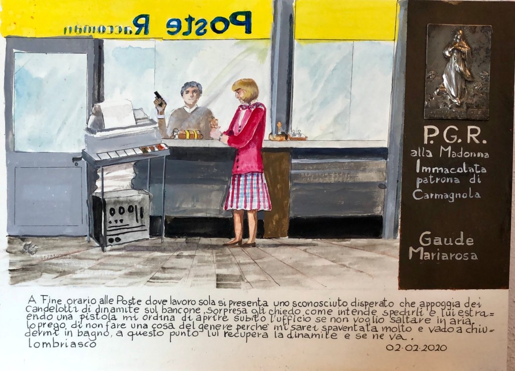 Nubi fameliche salgono dalla valle, e gravide di pioggia incappucciano i monti. I tre uomini si alzano dalla panchina, dove lasciano dei fogli, incamminandosi per la viuzza del paese, fino al portone di un antico palazzo, dove entrano.