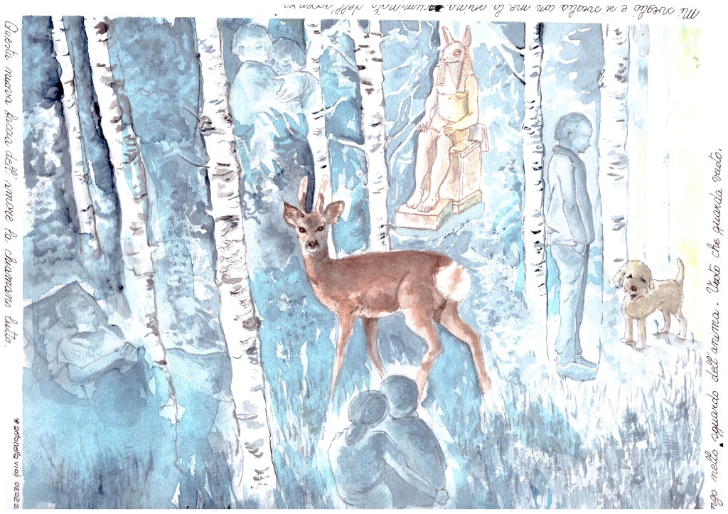Ecco il motivo di questo scritto-onirico in omaggio alla memoria dell’artista Rosario Murabito, del poeta Raffaele Carrieri e del critico d’arte Franco Russoli: tre uomini eccelsi, dediti alle muse; e a Grace, musicale presenza di quella casa, nel paese di Casoli di Camaiore, che aperta agli uomini e al bello, lasciò in dono a tutti, per poterne vivere l’incanto.