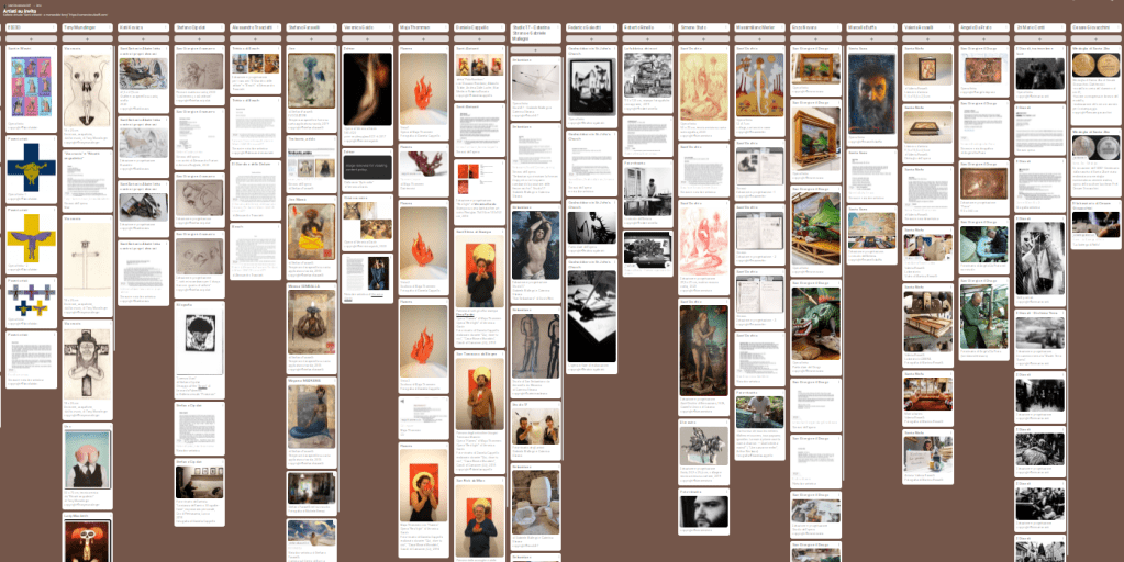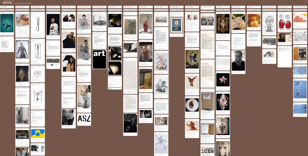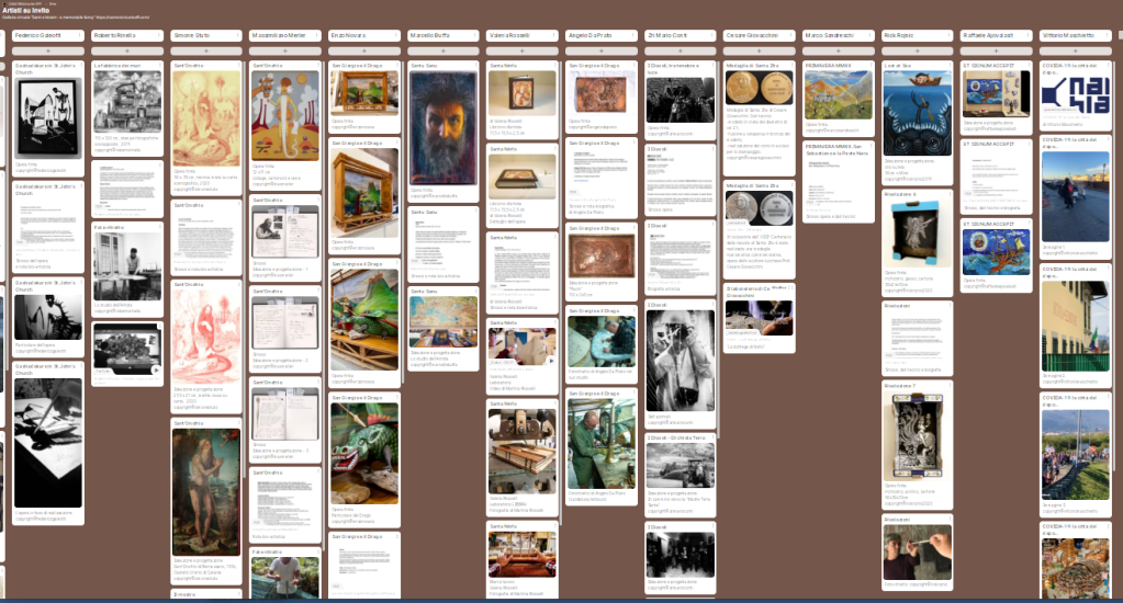 Collegamenti alla Galleria virtuale > Per ogni categoria partecipante si visualizzano le opere sulla piattaforma “padlet”: scorrendo in orizzontale i Nomi ed, in verticale, i contenuti relativi a ciascuno di loro.