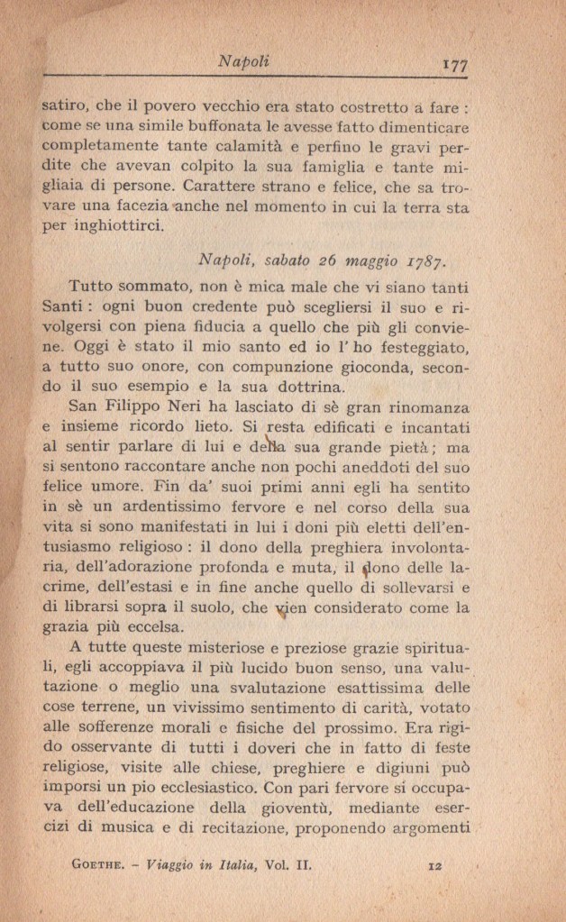 Dal “Viaggio in Italia” di Johann Wolfgang von Goethe (tradotto da Eugenio Zaniboni, Ed. C. Sansoni – Firenze)