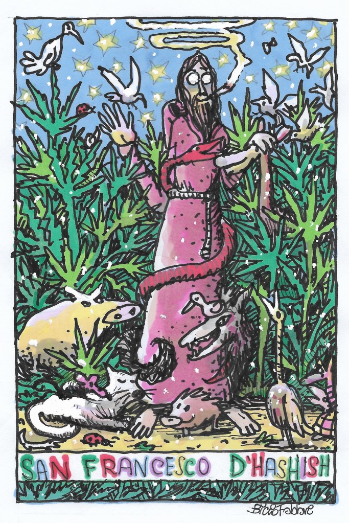 “Questo santino per me è un atto d’amore. Per tanti può risultare blasfemo, la mia indole satirica salta sempre fuori…” ( BICIO Fabbri)